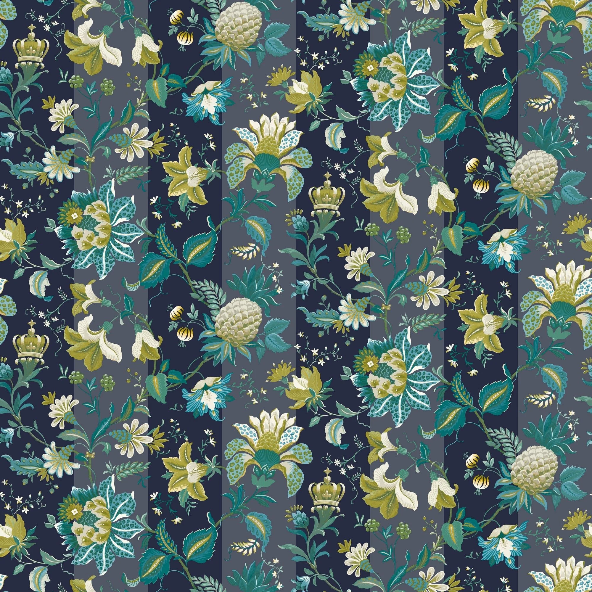 Featuring a striking Jacobean floral pattern with an intriguing striped background, this bold design is the epitome of style. The eye-catching combination of acid green and navy tones creates a dramatic and mesmerizing effect that is perfect for adding a touch of drama to any room. This wallpaper is not only visually stunning but also a guaranteed conversation starter.